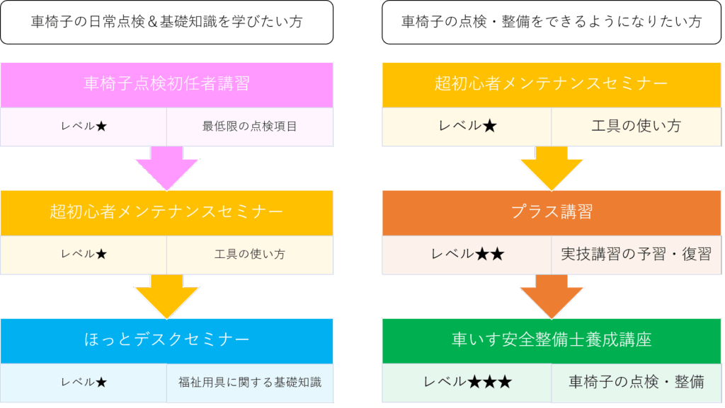 車いす安全整備士の資格取得を考えていないまたはハードルが高いと思っている方に向けた車椅子の点検に特化した講座です。